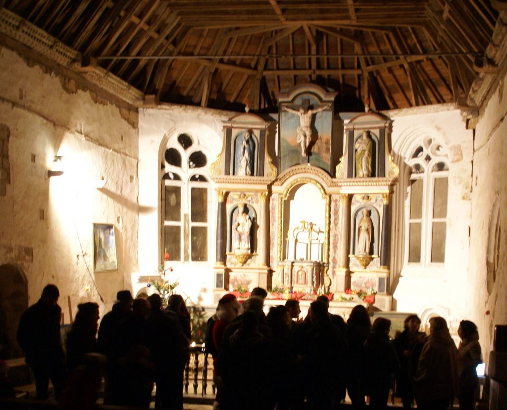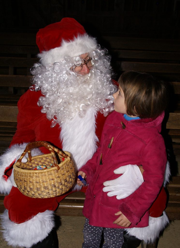 Avant d’écouter un conte, petits et grands ont vu arriver le Père Noël, sur une drôle de machine. « Waouh, il est moderne le Père Noël, chuchote Marie, 4 ans à sa sœur. Ou est-ce que tu crois que c’est pour économiser les forces de ses rennes pour demain soir ? » Une question qui restera sans réponse tant les enfants étaient pressés de recevoir un bonbon. Ils ont ensuite partagé un goûter, chocolat chaud pour les enfants et vin chaud pour les grands, avec des gâteaux maison, préparés par des bénévoles. Une tradition qui n’est pas prête de s’arrêter car cette année encore, la petite chapelle était pleine.