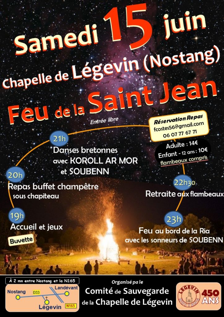 Ce n’est pas encore l’été (presque…) mais c’est déjà la Grande Soirée du Feu de la Saint Jean qui aura lieu le samedi 15 juin, à Légevin (à mi-distance entre Nostang et Landévant).
